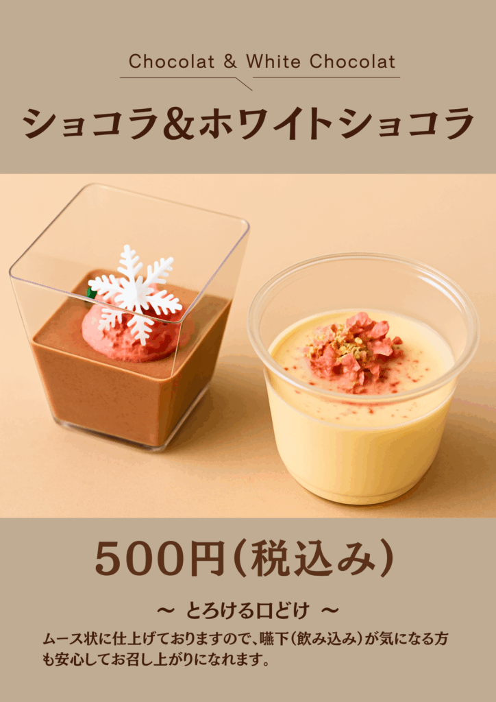 ※嚥下スイーツ「ショコラ&ホワイトショコラ」は、フラットロケーション用に販売した商品です。