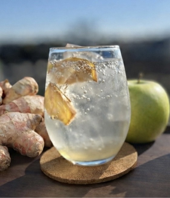 新しい酵素シロップが完成しました。 高知の無農薬・赤生姜と、山形の「青林(せいりん)」という品種の青りんごで仕込んだ、特製のアップルジンジャーです。 炭酸割り、水割り、お湯割りからお選びいただけます。シロップに浸かった実も美味しいので、ぜひ一緒に召し上がってください。