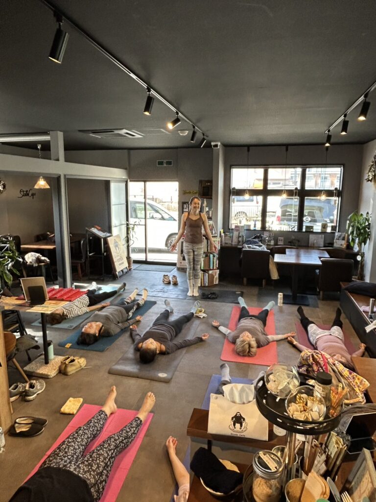 先日、今年初となるヨガワークショップを当カフェにて開催しました。 総勢11名の方にご参加いただき、店内が活気に満ち溢れていました。