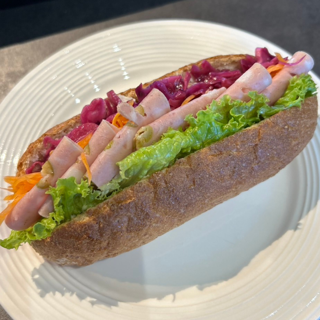 イタリア産モルタデッラハムにキャロットラペとクリームチーズを合わせました
